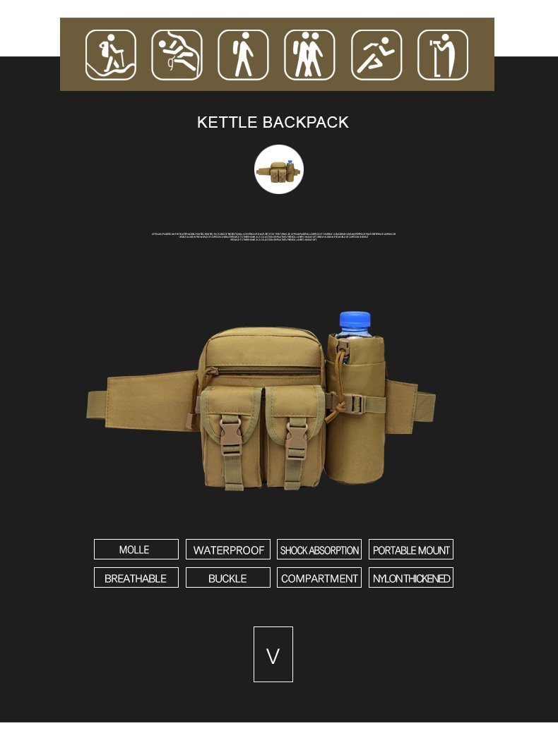 - Our company's Jungle Digital Color Army Field Portable Tactical Waist Backpack Water Bottle Bag For Outdoor Camping are mainly export-oriented, our company in line with the development concept of 'survival by quality, development by reputation' and has achieved good economic and social benefits.